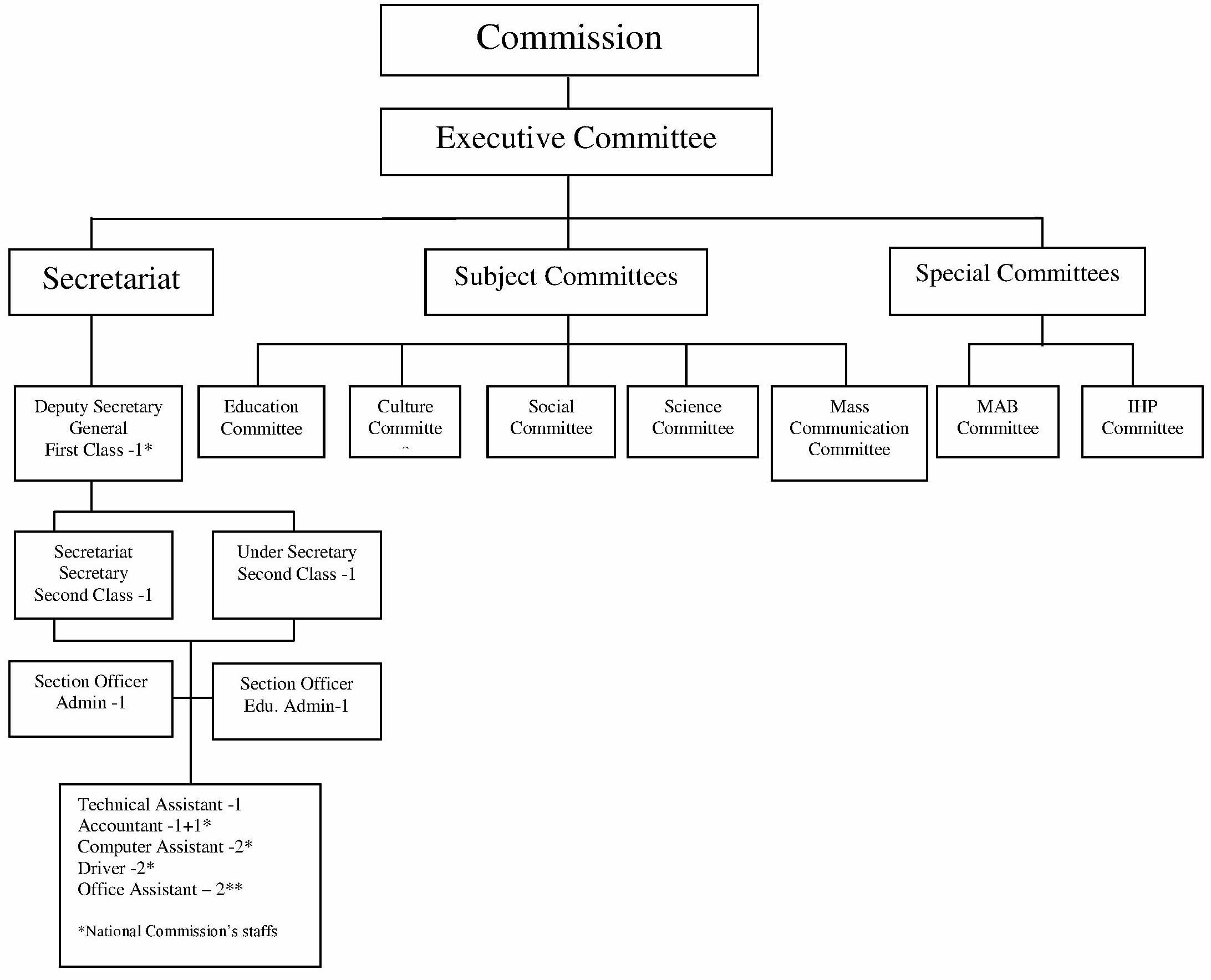 आयोगको कार्यकारिणी निकायको रुपमा निम्न बमोजिमको एक कार्यकारिणी समिति रहने व्यवस्था आयोगको विधानले गरेको छ।